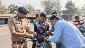 ખાસ કરીને ઉત્તરાયણના તહેવારમાં પતંગની દોરી થી બાઇક સવારોને થતી ઇજાઓ રોકવા માટે તેમાંથી રક્ષણ મેળવવા બાઇક ઉપર સેફ્ટી ગાર્ડ લગાવાયા હતા. આ સાથે પી.આઈ. લાકોડે બાઇક સવારોને હેલ્મેટ પહેરવા માટે પ્રોત્સાહિત કરવા પ્રતીકાત્મક ‘કી-ચેન’ નું પણ વિતરણ કર્યું હતું.